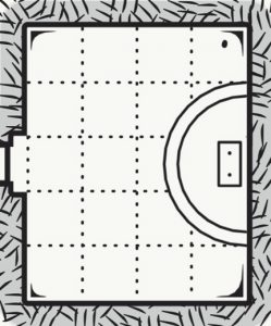 You step past the massive broken door and into the large foyer of Mosskeep Manor. Huge floor to ceiling windows are boarded up with rotting wood and ancient banners hang in tatters from the beamed ceiling. Piles of rubble are scattered around the flagstone floor.